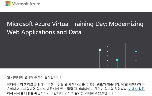 5월 21일 진행된 Microsoft Azure Training Day: Modernizing Web Application and Data 웨비나 발표자료와 다시보기입니다. 다운로드 링크와 더불어 하단에 첨부파일 클릭하시면 발표자료가 있습니다.