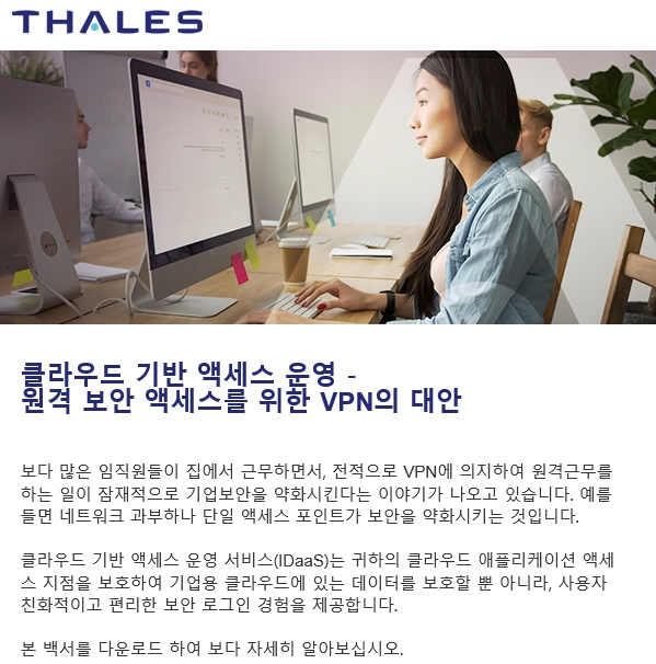 탈레스(THALES)에서 배포하는 클라우드 기반 액세스 운영 - 원격 보안 액세스를 위한 VPN의 대안 백서입니다.