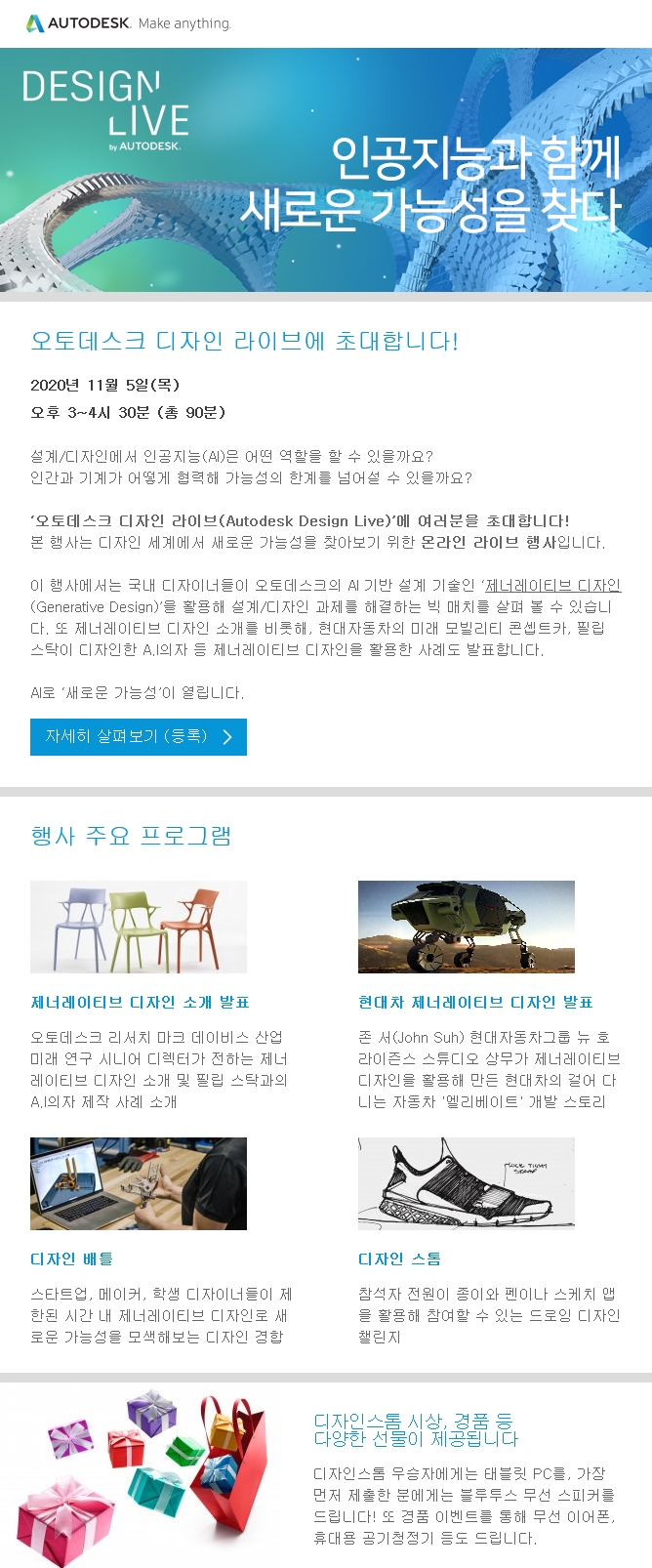 AI로 ‘새로운 가능성’이 열립니다. 오토데스크 디자인 라이브와 함께 시작하세요!