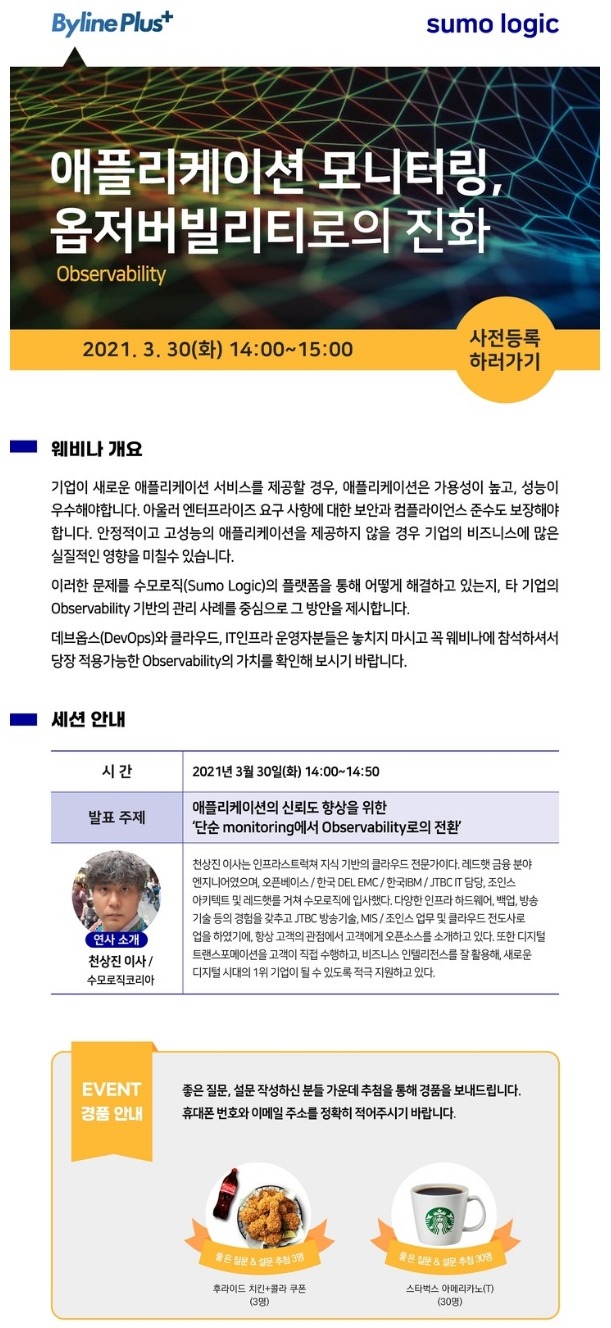 데브옵스(DevOps)와 클라우드, IT인프라 운영자분들은 놓치지 마시고 꼭 웨비나에 참석하셔서 당장 적용가능한 Observability의 가치를 확인해 보시기 바랍니다.