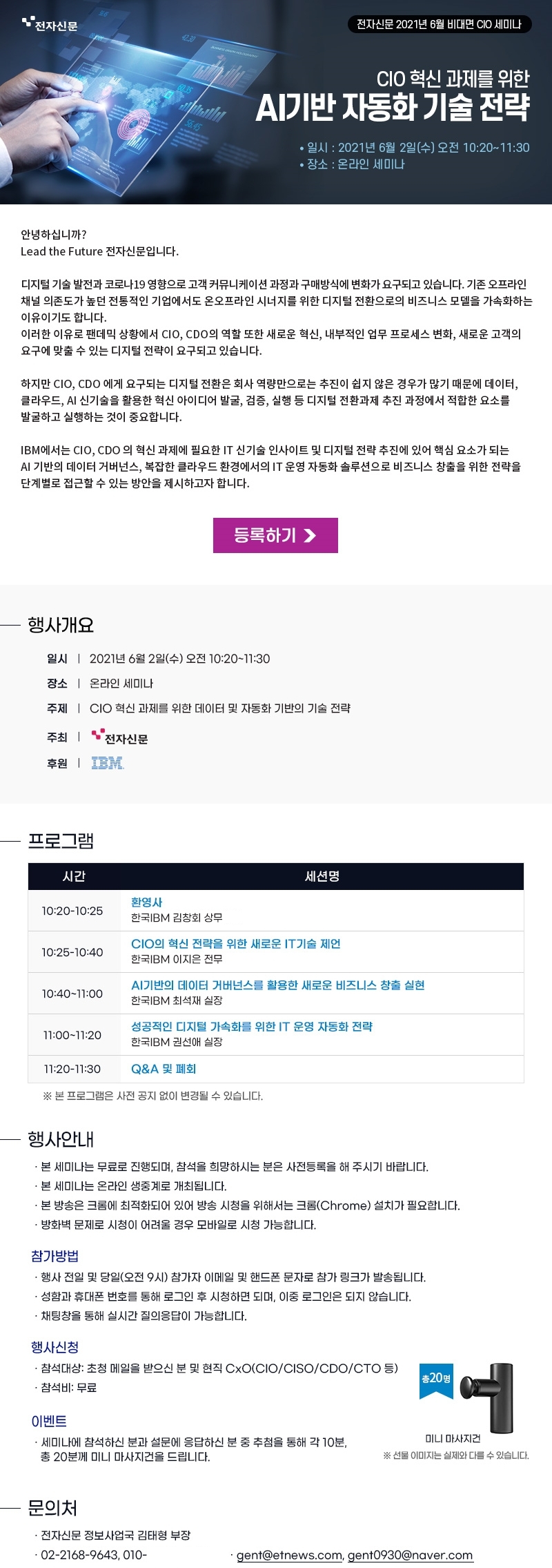 전자신문은 6월 2일 온라인 생중계로 전자신문 2021년 6월 비대면 CIO 세미나를 개최합니다.