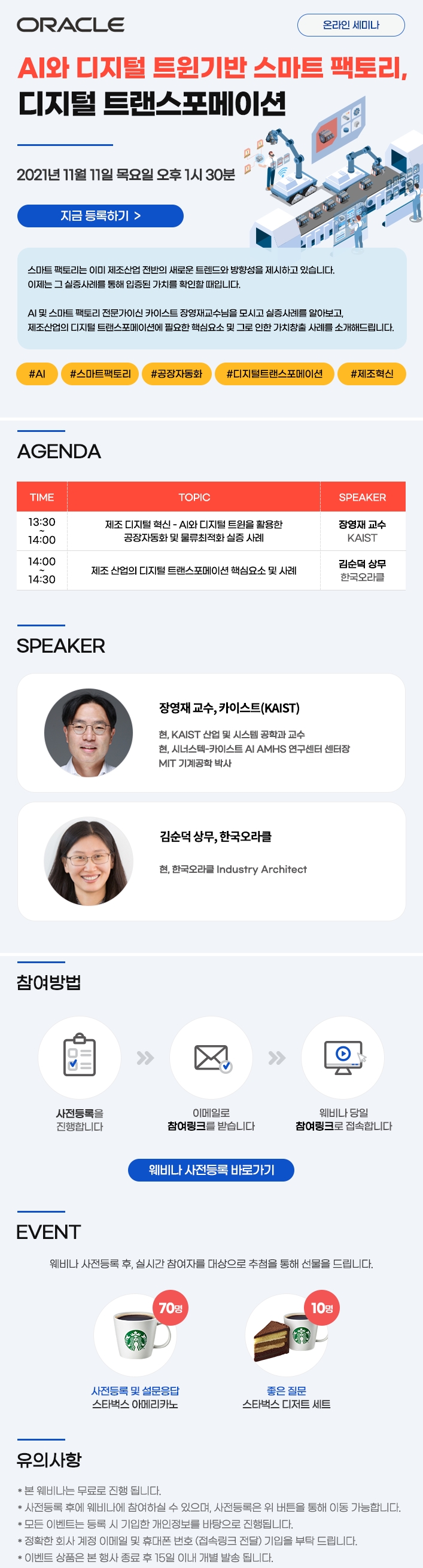 • 경품: 사전등록 및 설문응답 70명 스타벅스 아메리카노, 좋은 질문 10명 스타벅스 디저트 세트