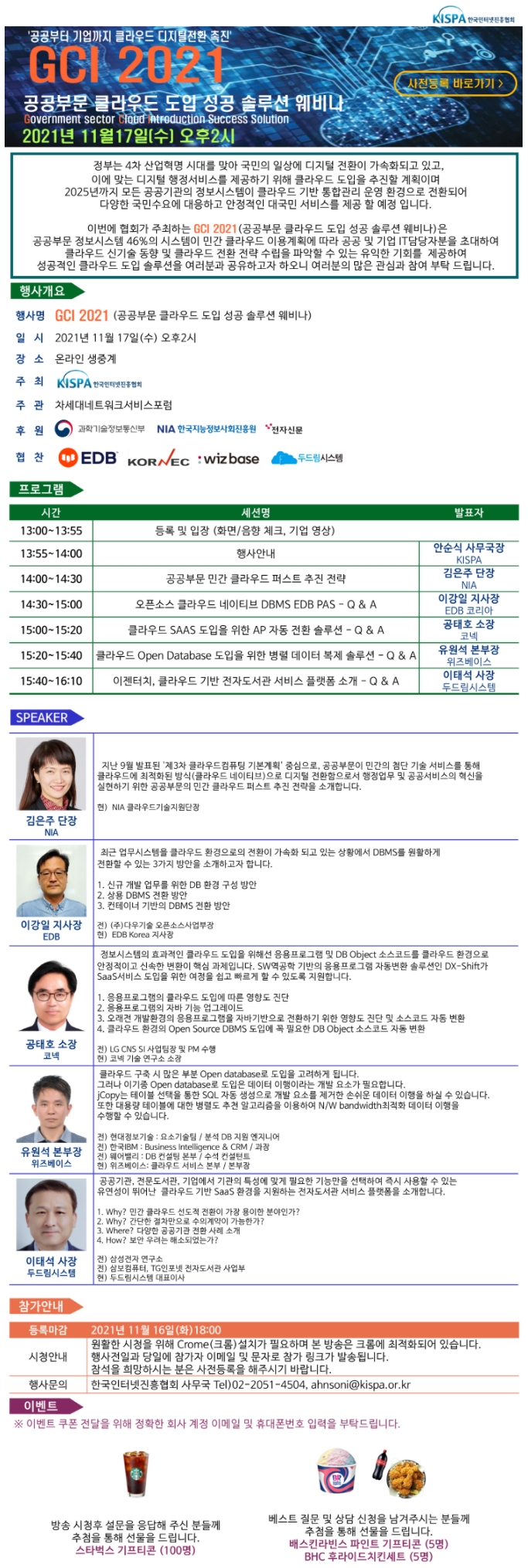 • 행사명: GCI 2021 (공공부문 클라우드 도입 성공 솔루션 웨비나)