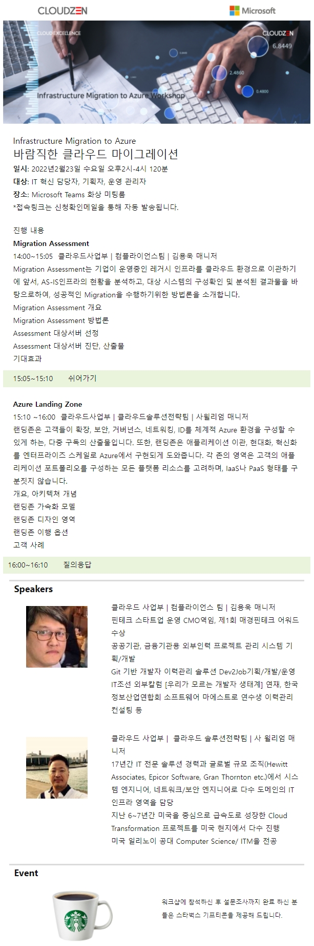 클라우드젠 웨비나 - Infrastructure Migration to Azure 바람직한 클라우드 마이그레이션 등록하기