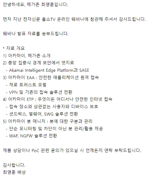 안녕하세요, 메가존 최영훈입니다. 먼저 지난 전자신문 올쇼TV 온라인 웨비나에 참관해 주셔서 감사드립니다.
