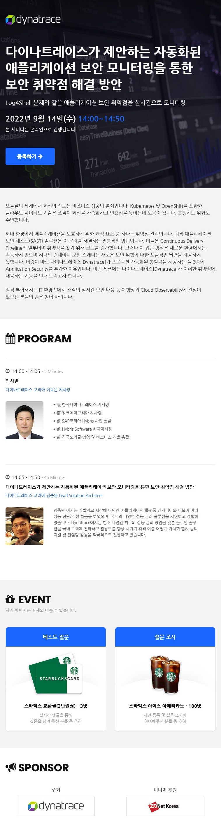 다이나트레이스 웨비나 - 다이나트레이스가 제안하는 자동화된 애플리케이션 보안 모니터링을 통한 보안 취약점 해결 방안 등록하기