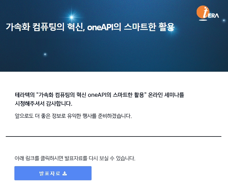 테라텍의 "가속화 컴퓨팅의 혁신, oneAPI의 스마트한 활용" 온라인 세미나를 시청해주셔서 감사합니다.