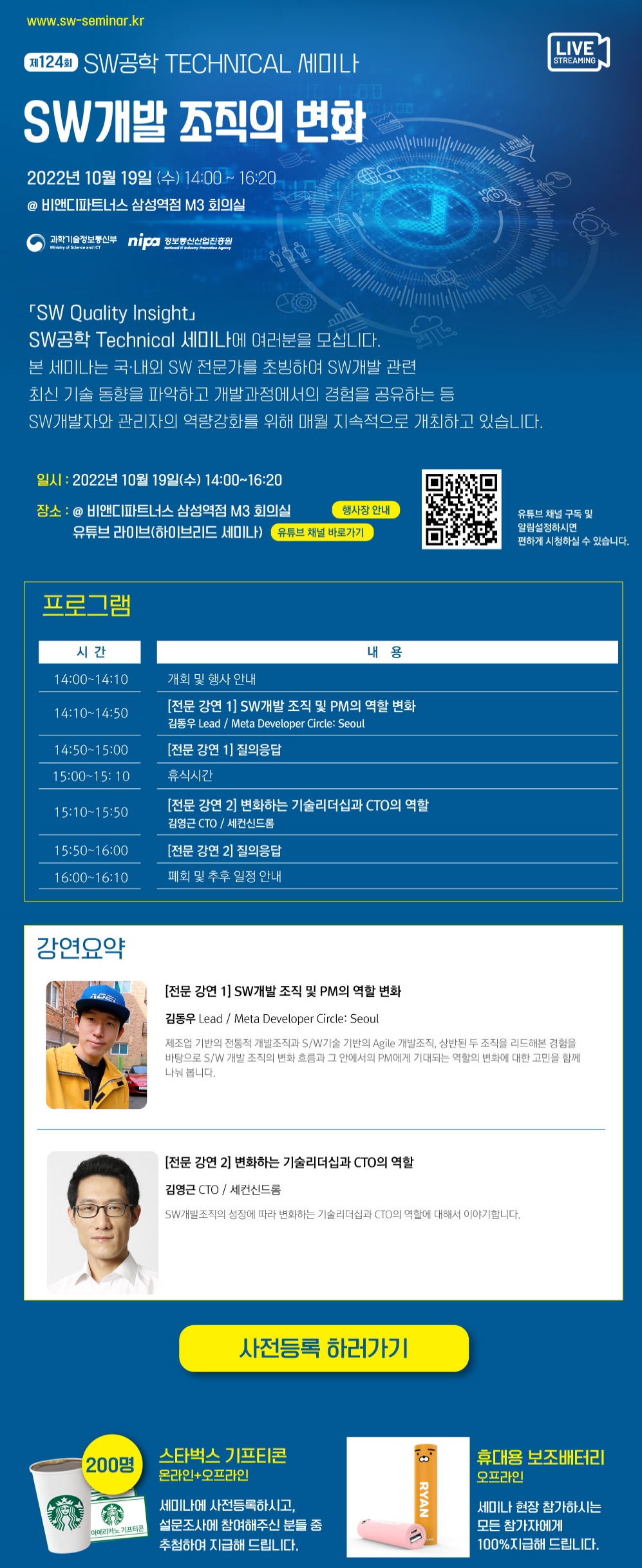 14:10-14:50 [전문 강연 1] SW개발 조직 및 PM의 역할 변화 - 김동우 Lead / Meta Developer Circle: Seoul
