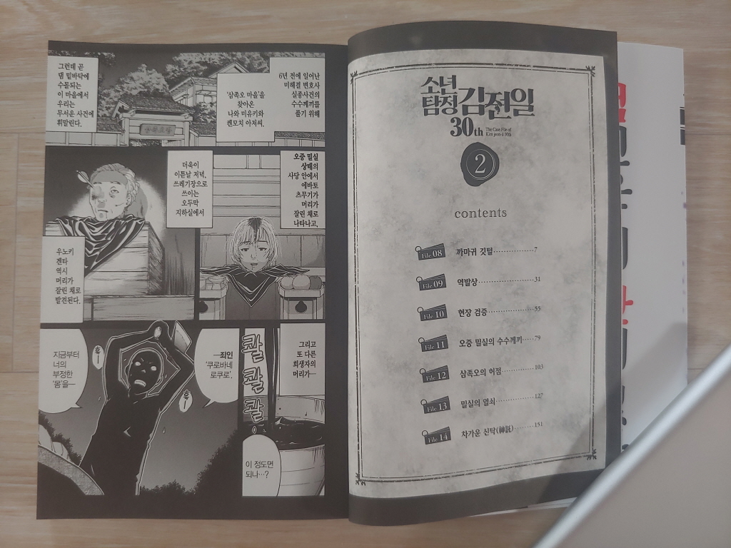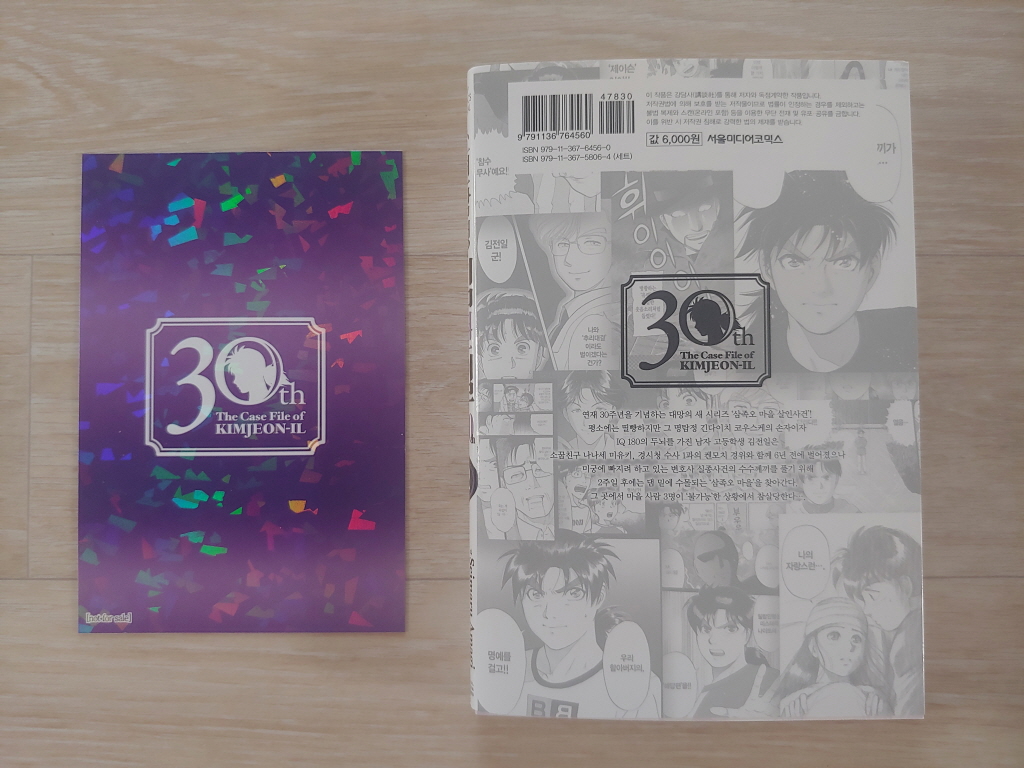 김전일 30주년 기념 에피소드 2권인데요 소년탐정 김전일은 제가 가장 애정하는 작품인 만큼 이번 편도 정말 재미있게 봤습니다 저번 편에 이어서 추리도 신박하고 긴장감이 잘 느껴지는 점이 특히 좋았던 것 같습니다 앞으로도 계속 시리즈가 이어져서 꾸준히 발매되었으면 좋겠네요 이상 소년탐정 김전일 30th 2이였습니다. 김전일 사건에 관한 상세한 설명은 여기를 참고하시기 바랍니다. 참고로 서울미디어코믹스(서울문화사)에서 발행되는 단행본 소식은 JUMP☆코믹스, 아이큐점프 공식카페(http://cafe.naver.com/bwiqjump)에서 확인하실 수 있습니다.