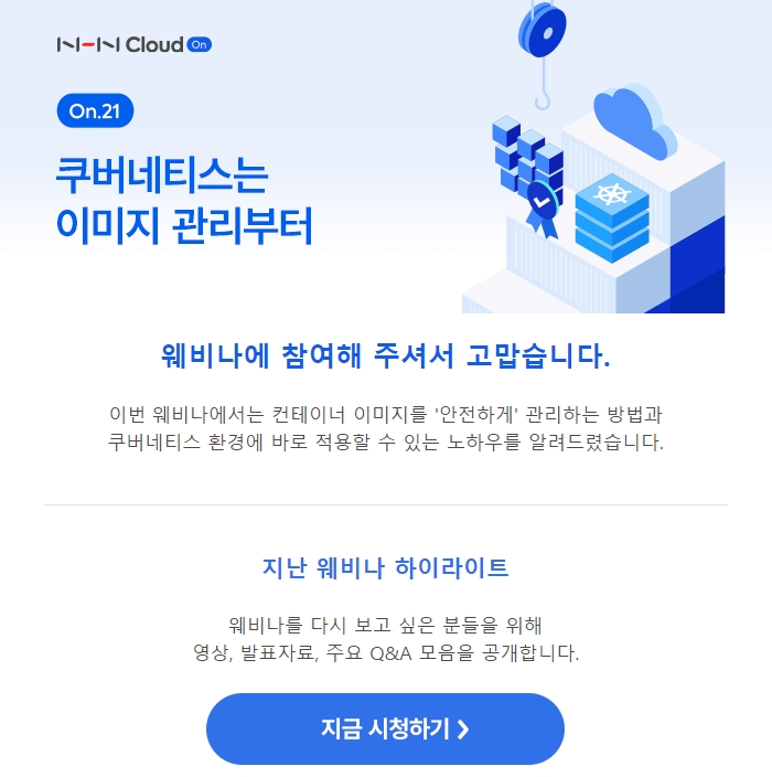 10월 31일 NHN Cloud에서 진행한 쿠버네티스는 이미지 관리부터 웨비나 발표자료와 다시보기입니다. 다운로드 링크와 더불어 하단에 첨부파일 클릭하시면 발표자료가 있습니다.